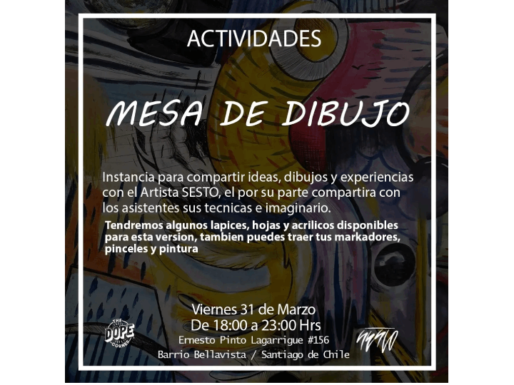 El evento comenzará a partir de las 18:00 hrs, hasta las 23:00 hrs. En, The Dope corner. Ernesto Pinto Lagarrigue 156, Recoleta.
